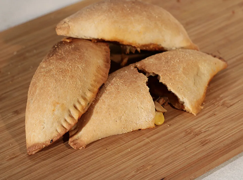 A savoury, folded pizza pocket stuffed with cheese and veggies, baked to golden perfection for a delicious, portable meal. This is a Sanjeev Kapoor exclusive recipe.